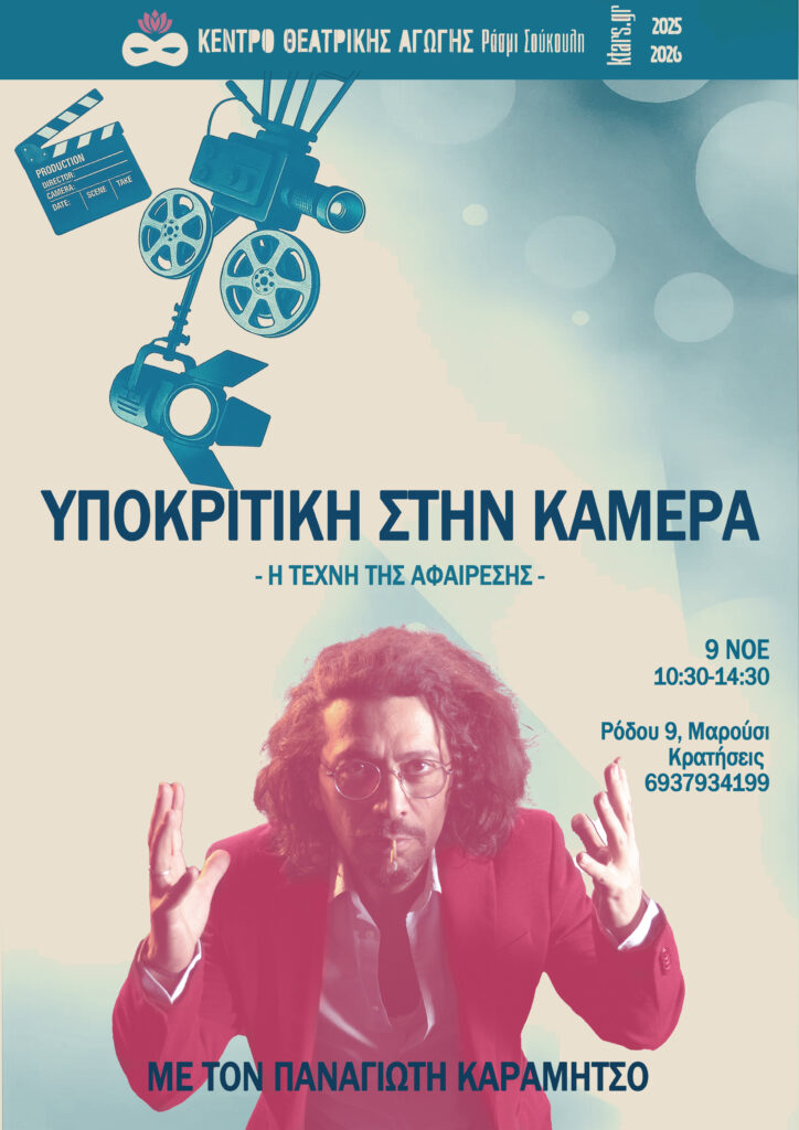 Ένα βιωματικό σεμινάριο που εισάγει τους συμμετέχοντες στη λεπτή τέχνη της κινηματογραφικής υποκριτικής.